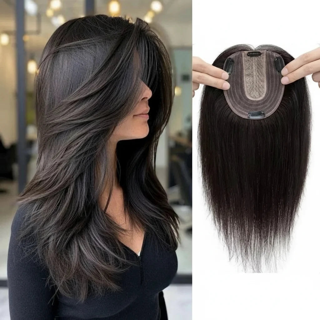 Built to last, our topper uses high-quality human hair and a durable silk base. With proper care, it will maintain its beauty and integrity, providing you with long-lasting volume and confidence for every single day.