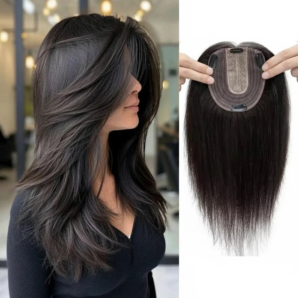 Absolutely! Our Silk-Top Human Hair Topper is crafted for a seamless, undetectable blend. The silk base mimics a natural scalp, and the premium human hair ensures it moves and feels just like your own. Prepare for compliments!